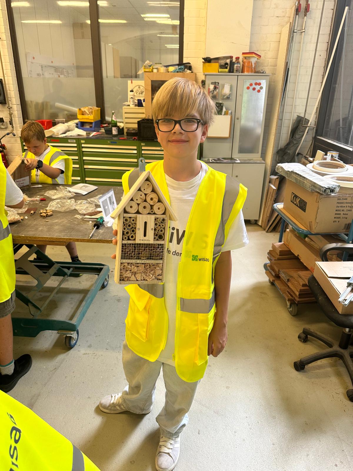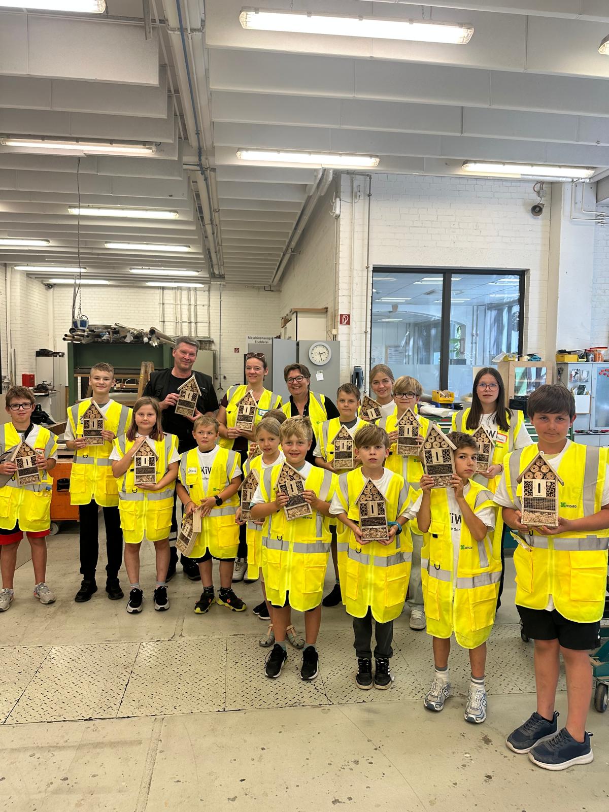 Besondere Stationen waren die verschiedenen Werkstätten: In der Druckwerkstatt wurde gezeigt, wie Aufsteller hergestellt werden, und in der Holzwerkstatt durften wir sogar selbst kreativ werden und ein Insektenhotel bauen.