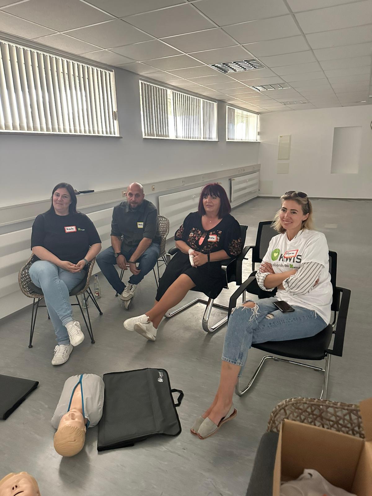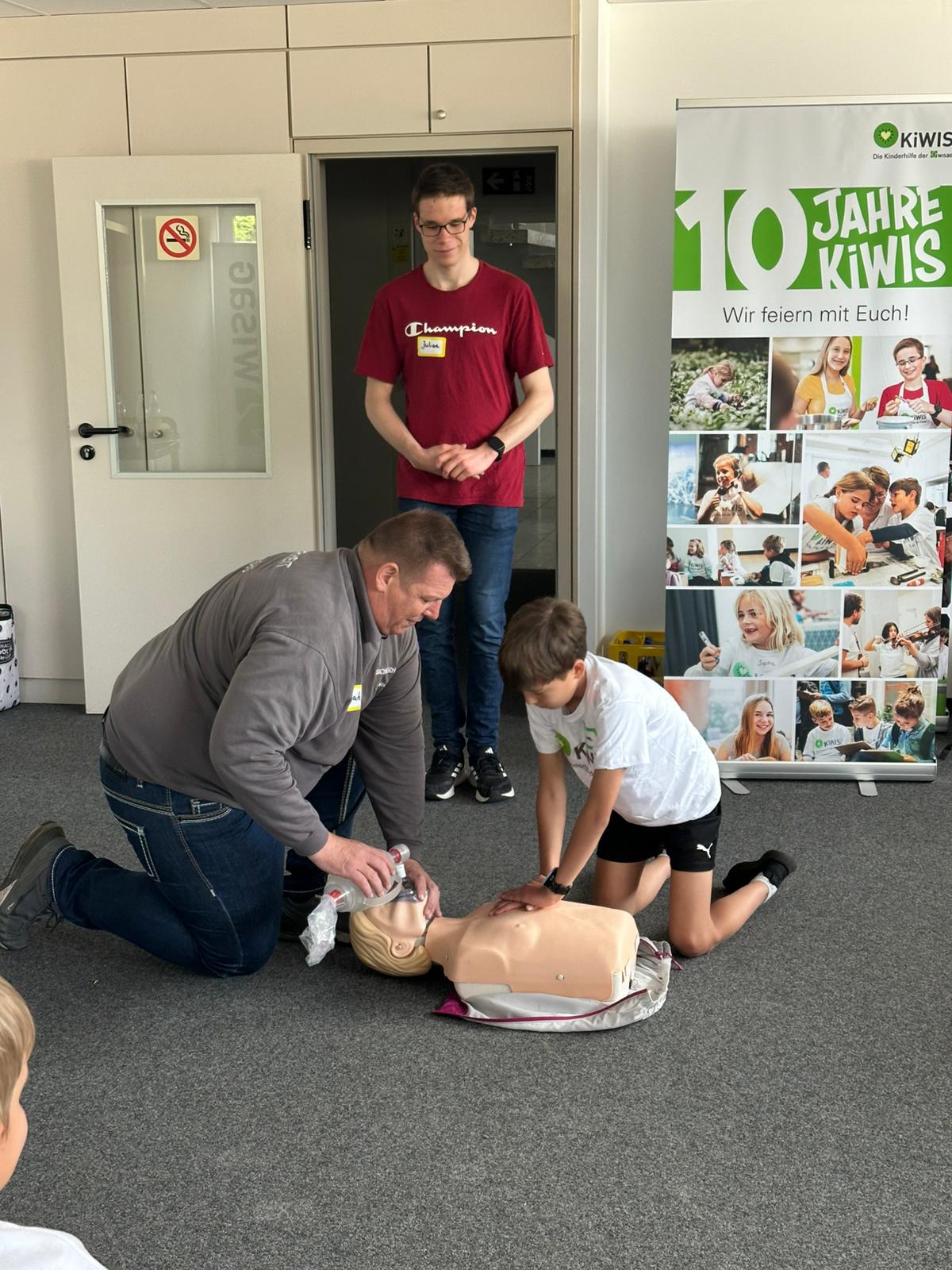 27.06.2025Unsere KiWIS haben beim Erste-Hilfe-Kurs in Augsburg mit unterschiedlichen Techniken gelernt, wie man Verbände anlegen kann, wie die stabile Seitenlage richtig angewendet wird und wie eine Reanimation funktioniert. Auch das Absetzen eines professionellen Notrufs wurde besprochen.