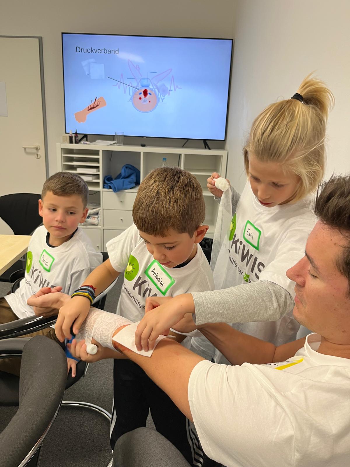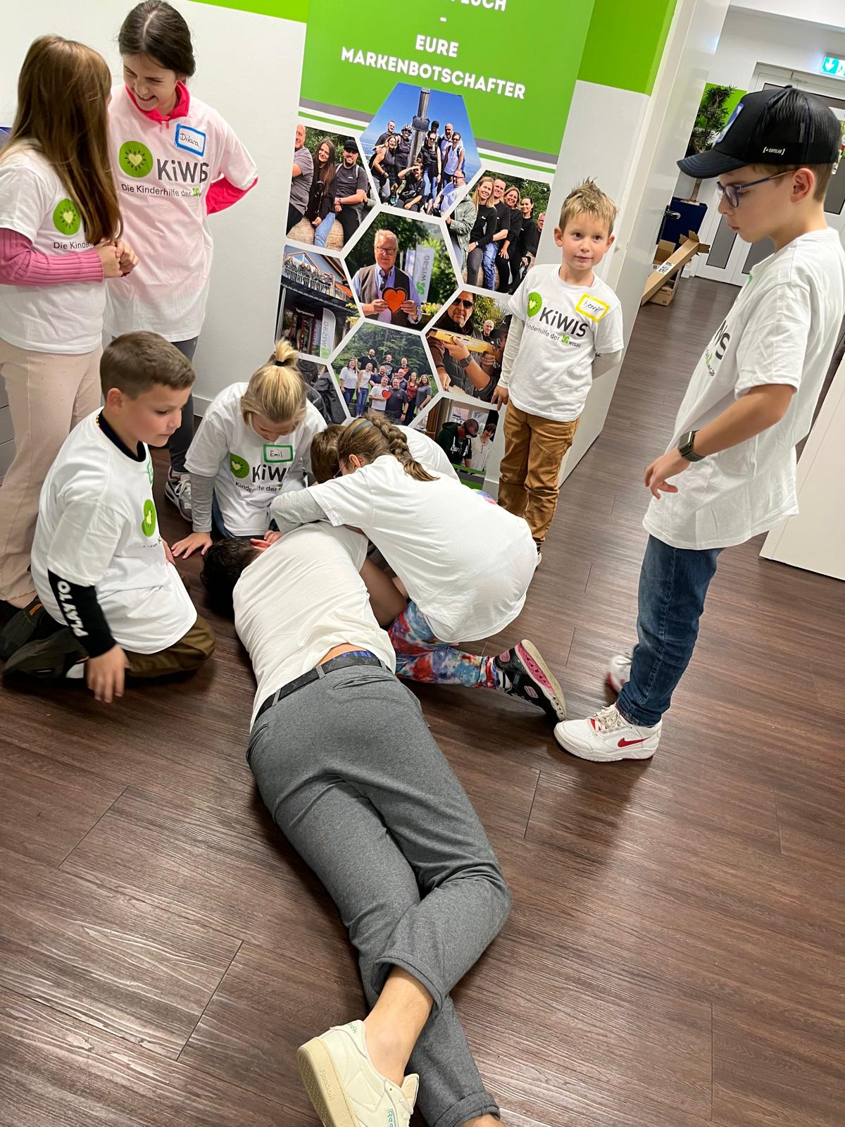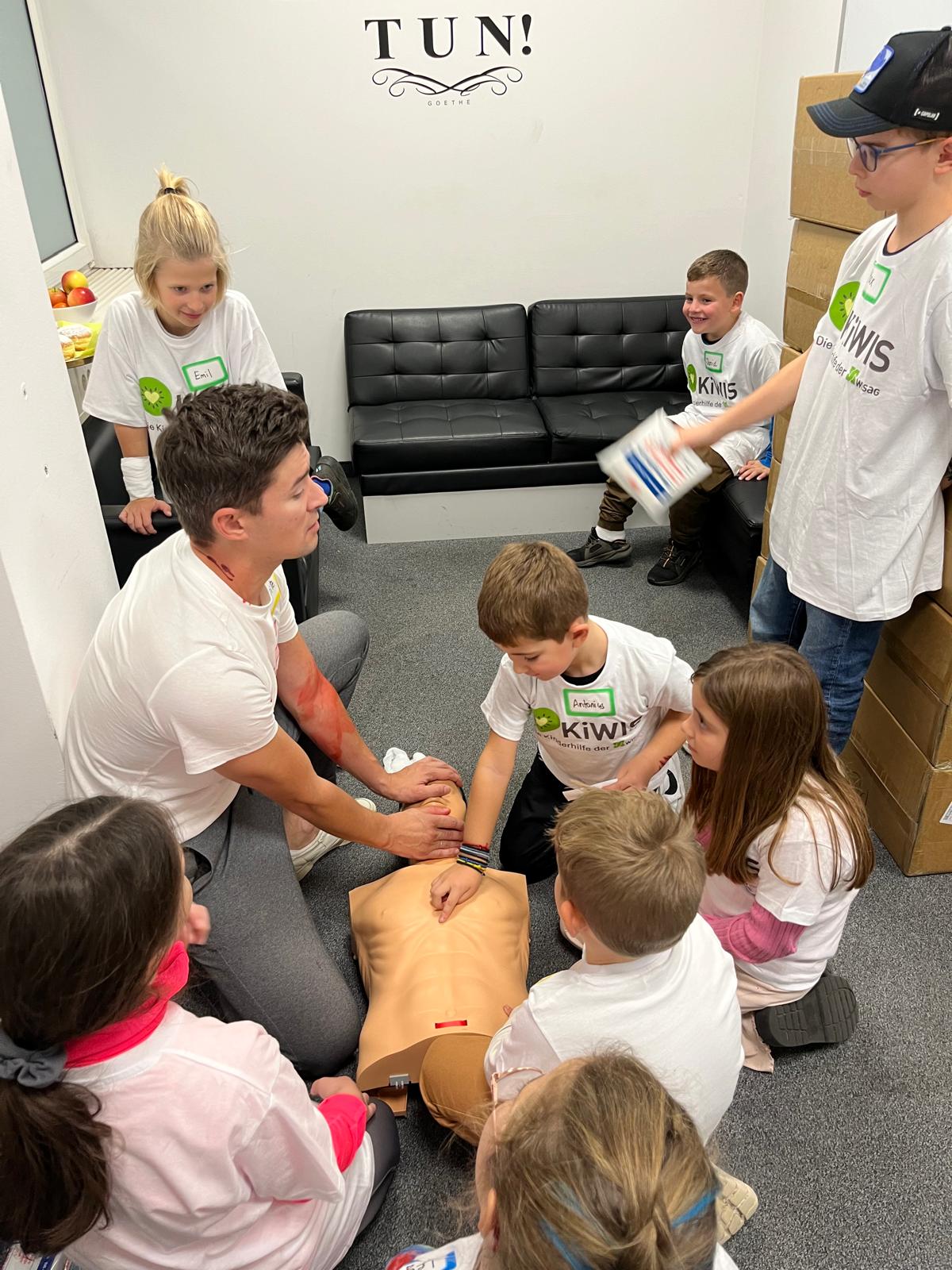 21.11.2024Beim Erste-Hilfe-Kurs in München wurden die KiWIS und ihre Eltern ebenfalls zum Verhalten in Notsituationen geschult. Neben der stabilen Seitenlage und dem Anlegen eines Verbands wurde auch geübt, wie man den Notruf richtig absetzt. Auch gefährliche Situationen beim Kleinkind wurde mit den Erwachsenen besprochen, so dass man sich in einem Notfall schnell und korrekt verhalten kann.