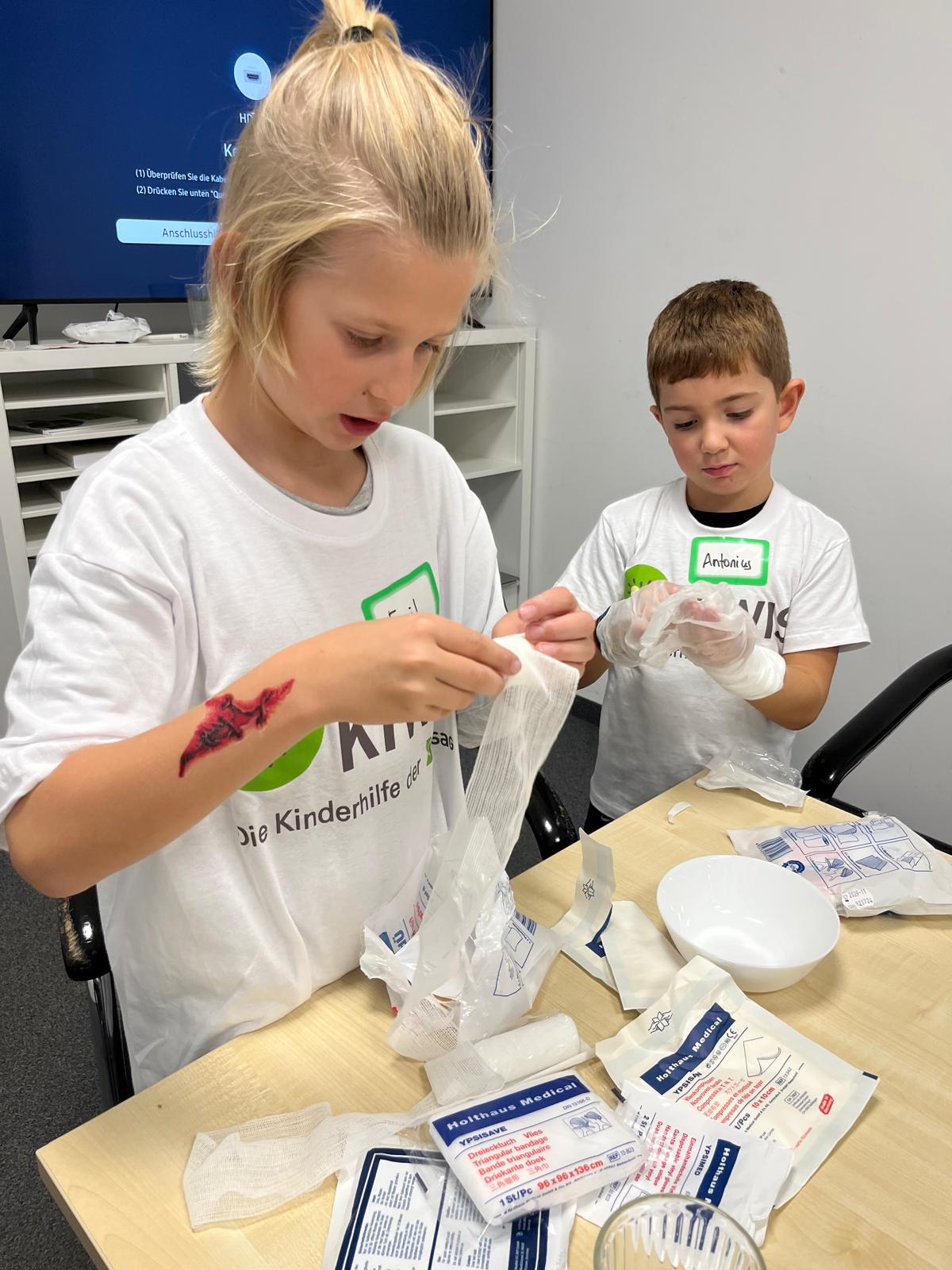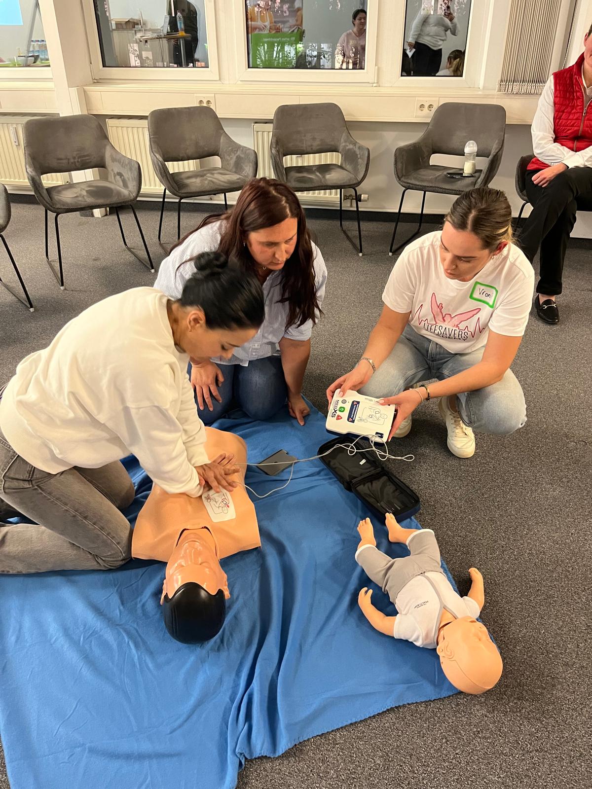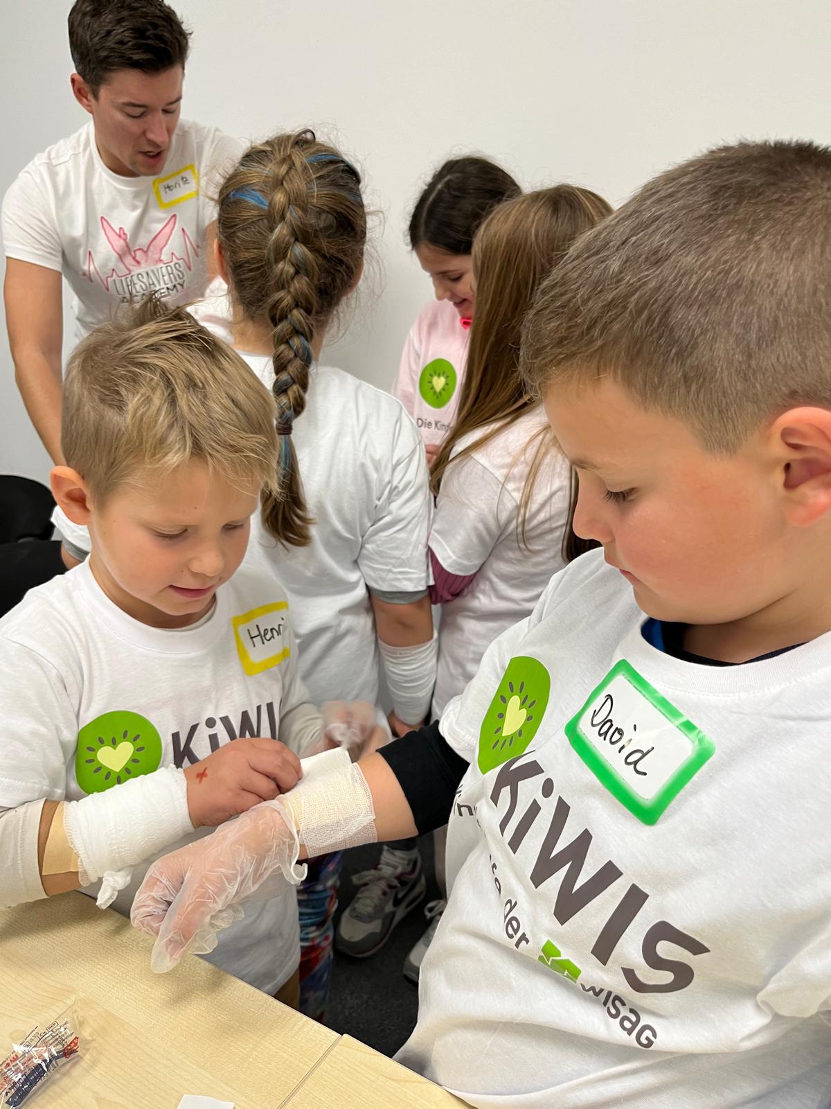 21.11.2024Beim Erste-Hilfe-Kurs in München wurden die KiWIS und ihre Eltern ebenfalls zum Verhalten in Notsituationen geschult. Neben der stabilen Seitenlage und dem Anlegen eines Verbands wurde auch geübt, wie man den Notruf richtig absetzt. Auch gefährliche Situationen beim Kleinkind wurde mit den Erwachsenen besprochen, so dass man sich in einem Notfall schnell und korrekt verhalten kann.