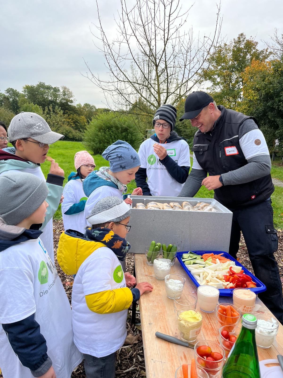 Unser selbst hergestellter Apfelsaft wurde natürlich inklusive kleinem Imbiss gleich vor Ort probiert – wie lecker!