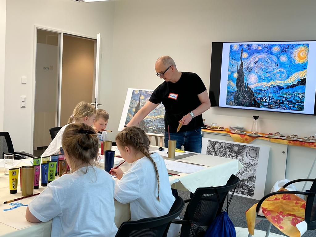 26.03.2023Am Freitag waren insgesamt über 10 Kinder beim zweiten Van Gogh Workshop 2023 - in Berlin versammelt. Wer war Van Gogh? Was machte ihn berühmt & wieso genau sprechen wir über ihn? Die KiWIS Kinder erforschten das Leben von van Gogh und seine wichtigsten Werke. Nach vielen tollen Einblicken und Fragen ging es schon an die ersten Ausstellungen und Bilder. Im Anschluss durfte jeder mit richtiger Künstlerausstattung selbst loslegen. Einmal malen wie Van Gogh und der Kreativität freien Lauf lassen.