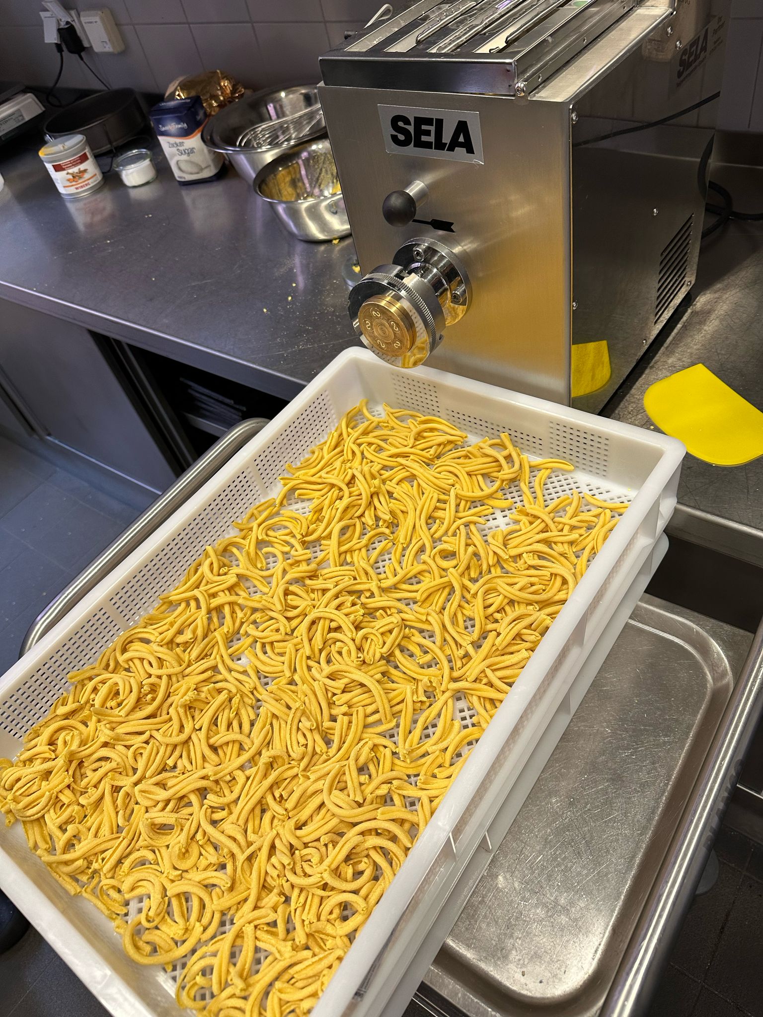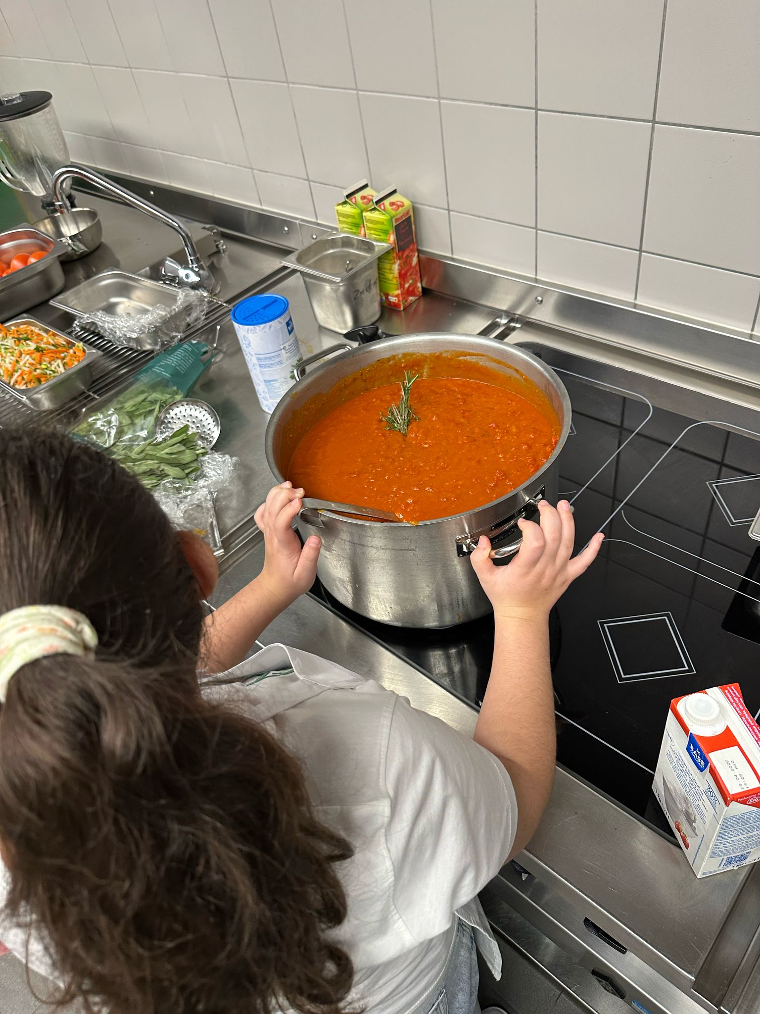 Wir haben gedrehte, kurze Nudeln und gefüllte Ravioli hergestellt und dazu eine leckere Tomatensauce gekocht.