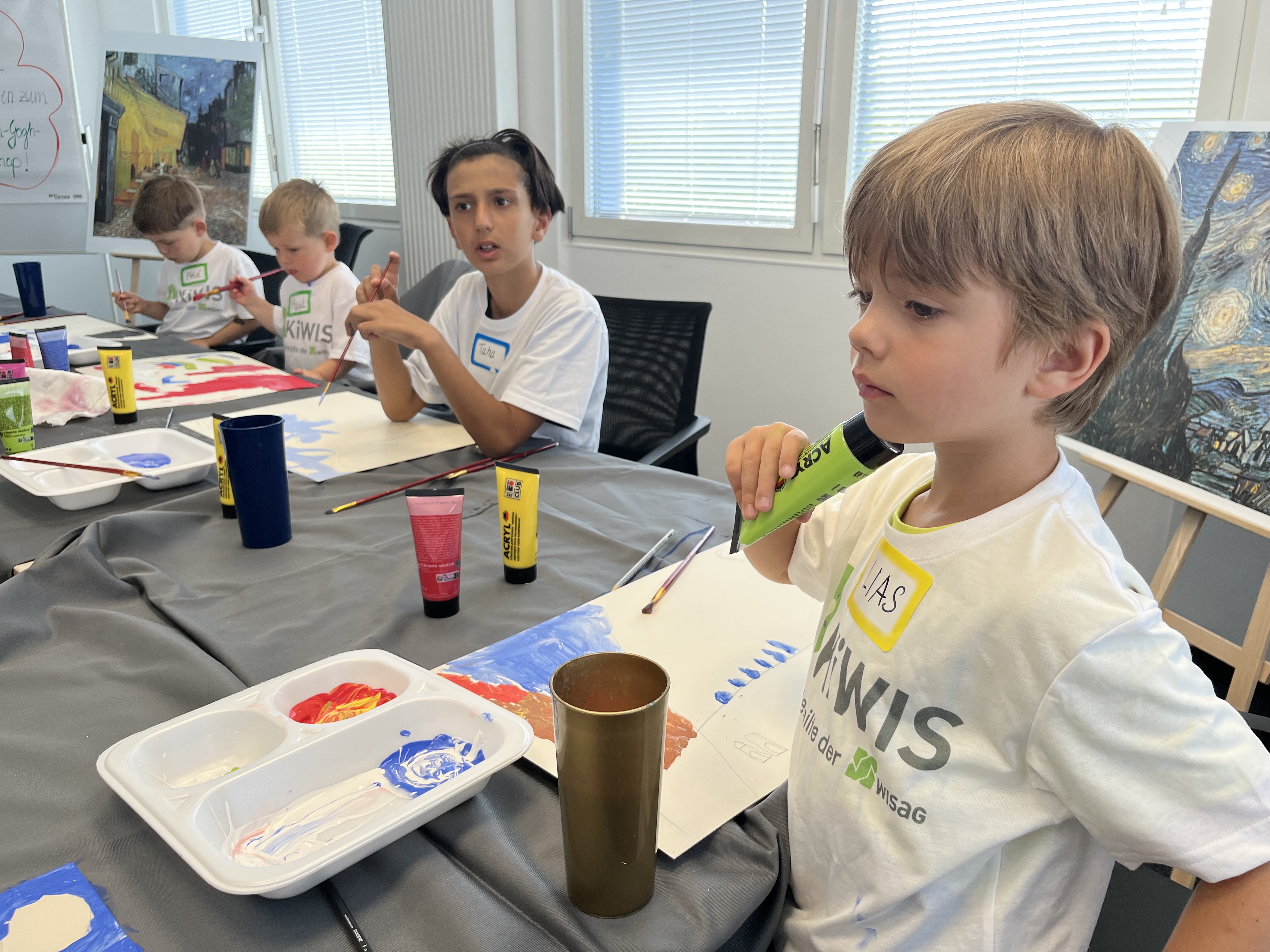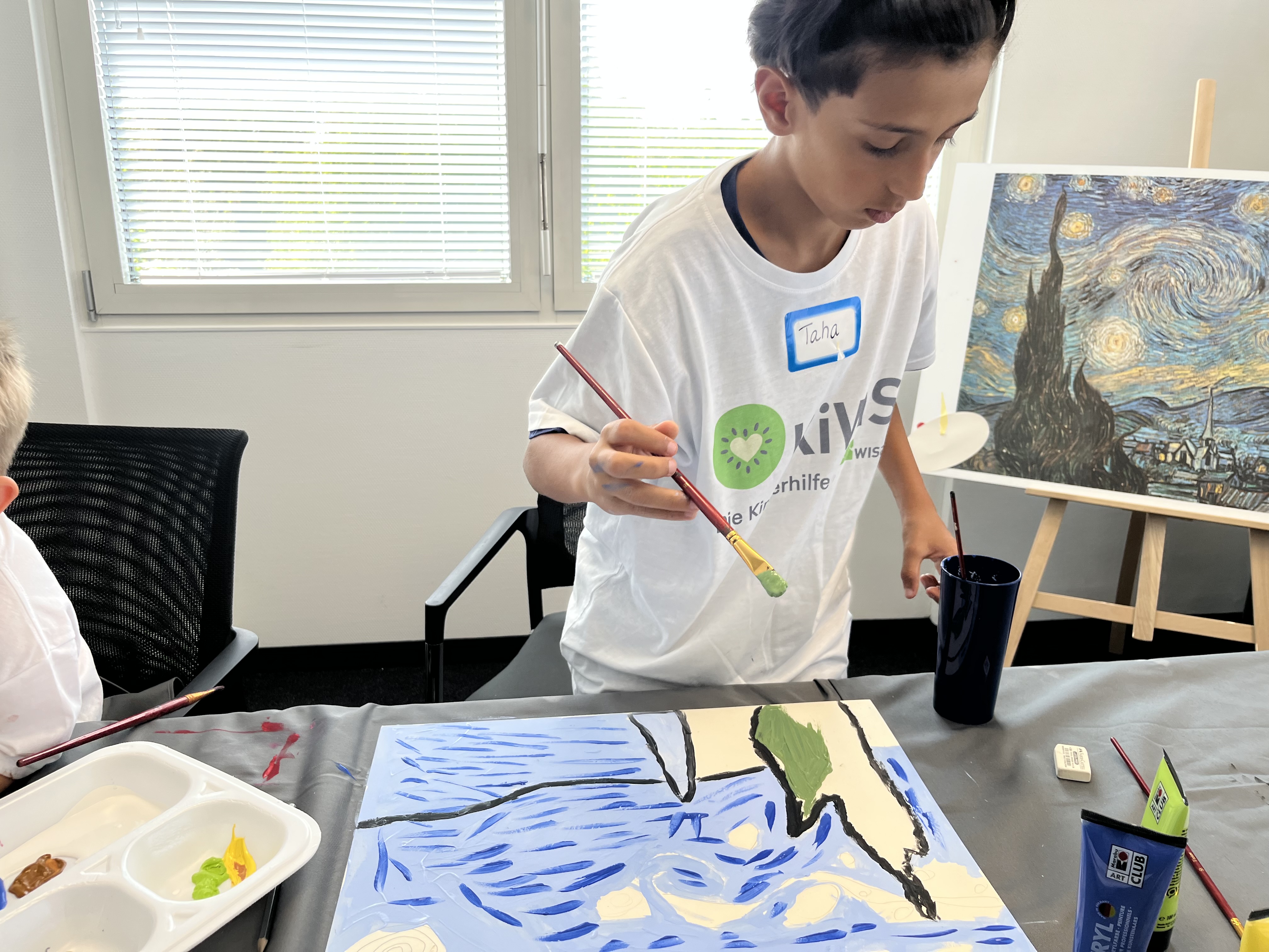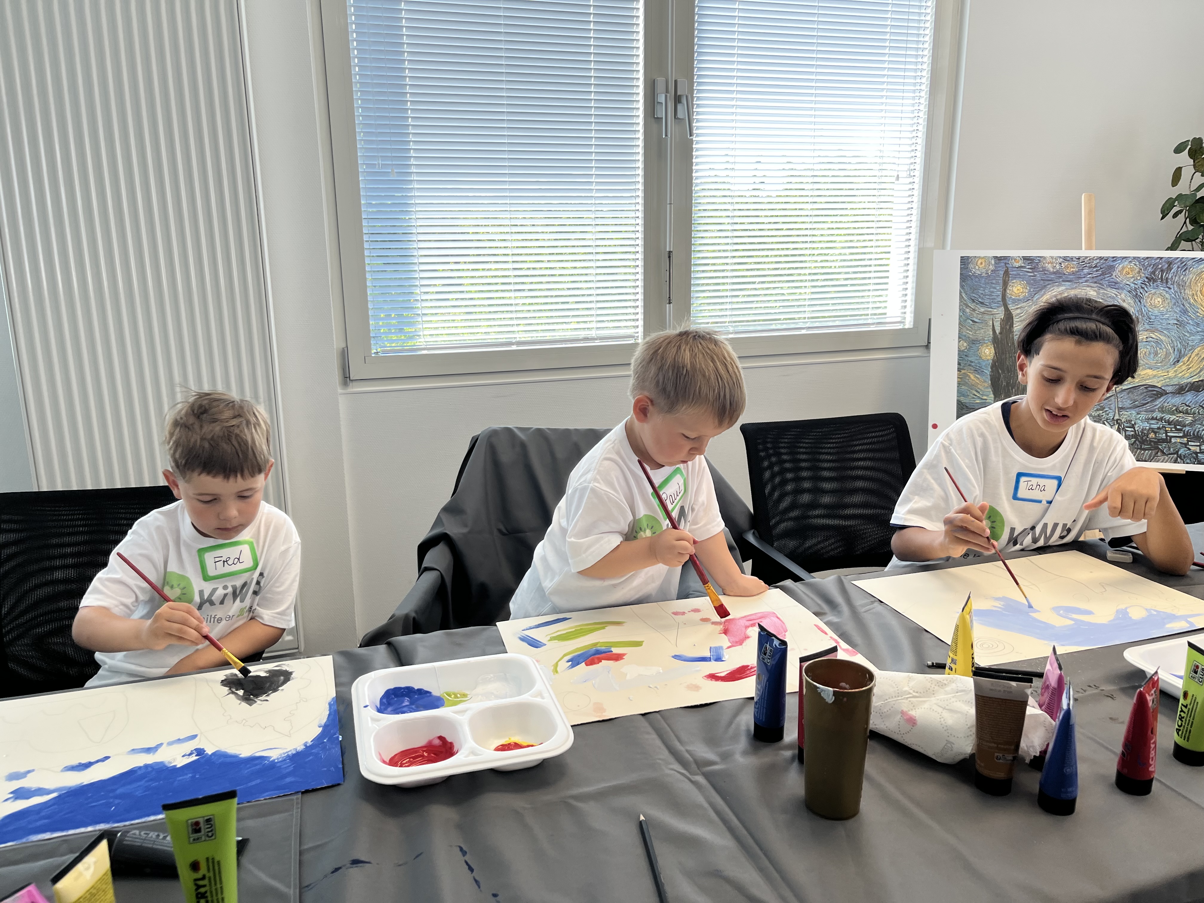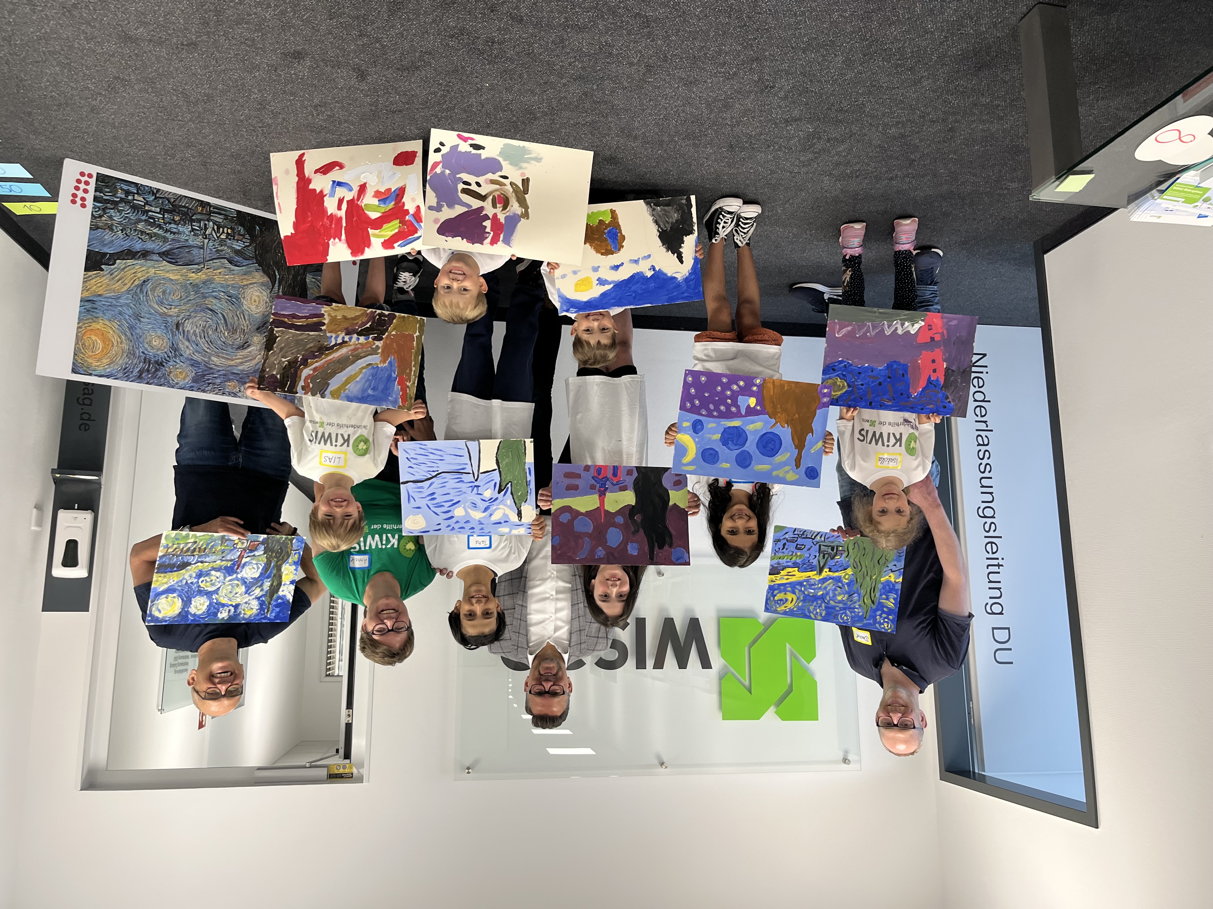 03.10.2023Ruck zuck haben wir KiWIS unsere Niederlassung in Duisburg in ein Malatelier verwandelt und mit den KiWIS-Kindern die Sternennacht von Vincent van Gogh gemalt. Im Anschluss sind wir in der Niederlassung noch auf einen Wissensquiz mit vielen Bildern und Informationen zum Leben des großartigen Malers gegangen. Wir hatten viel Spaß und haben auch viel Spannendes gelernt.